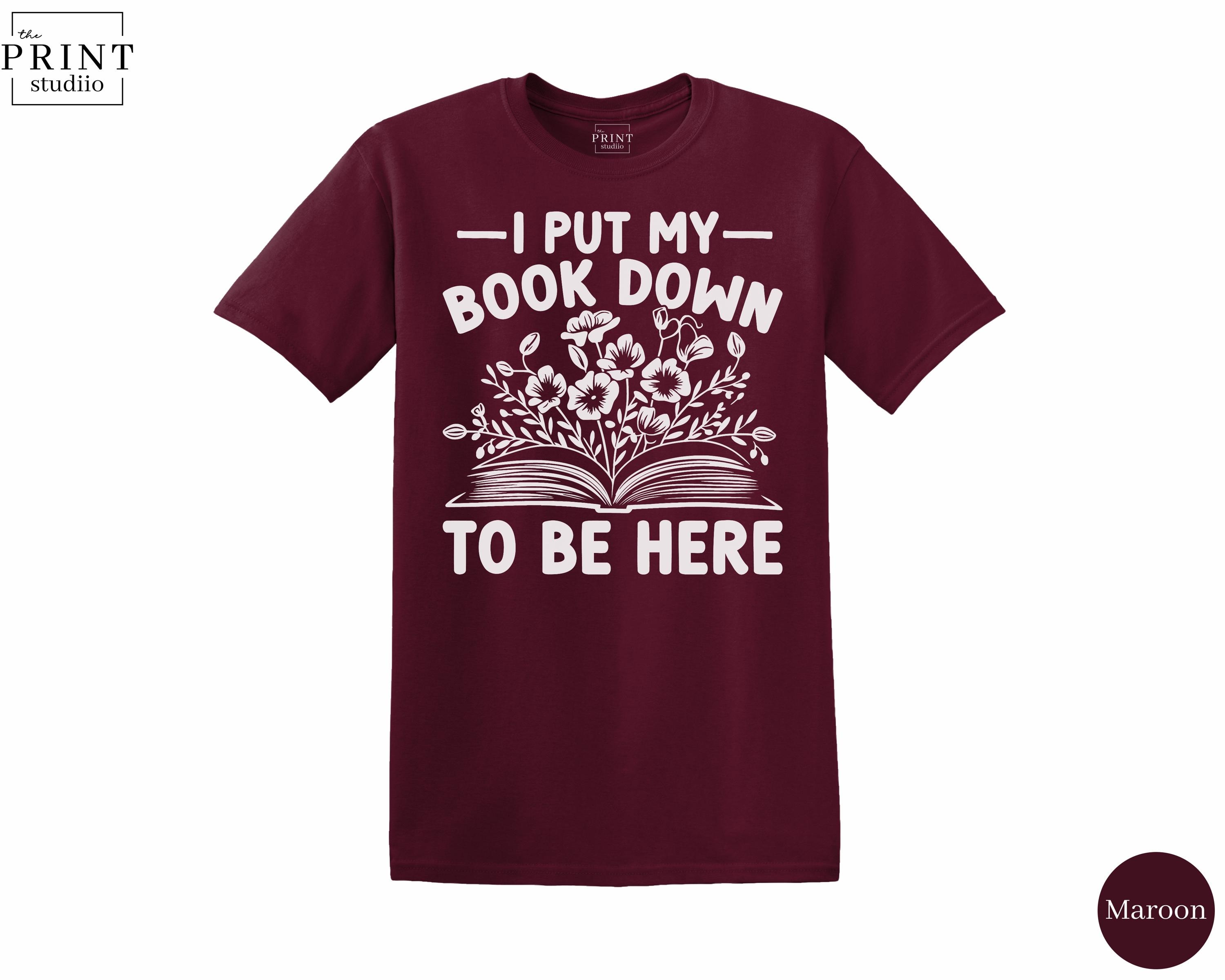 I Put My Book Down To Be Here T-Shirt, Funny Book Lover Sarcastic Graphic Tee