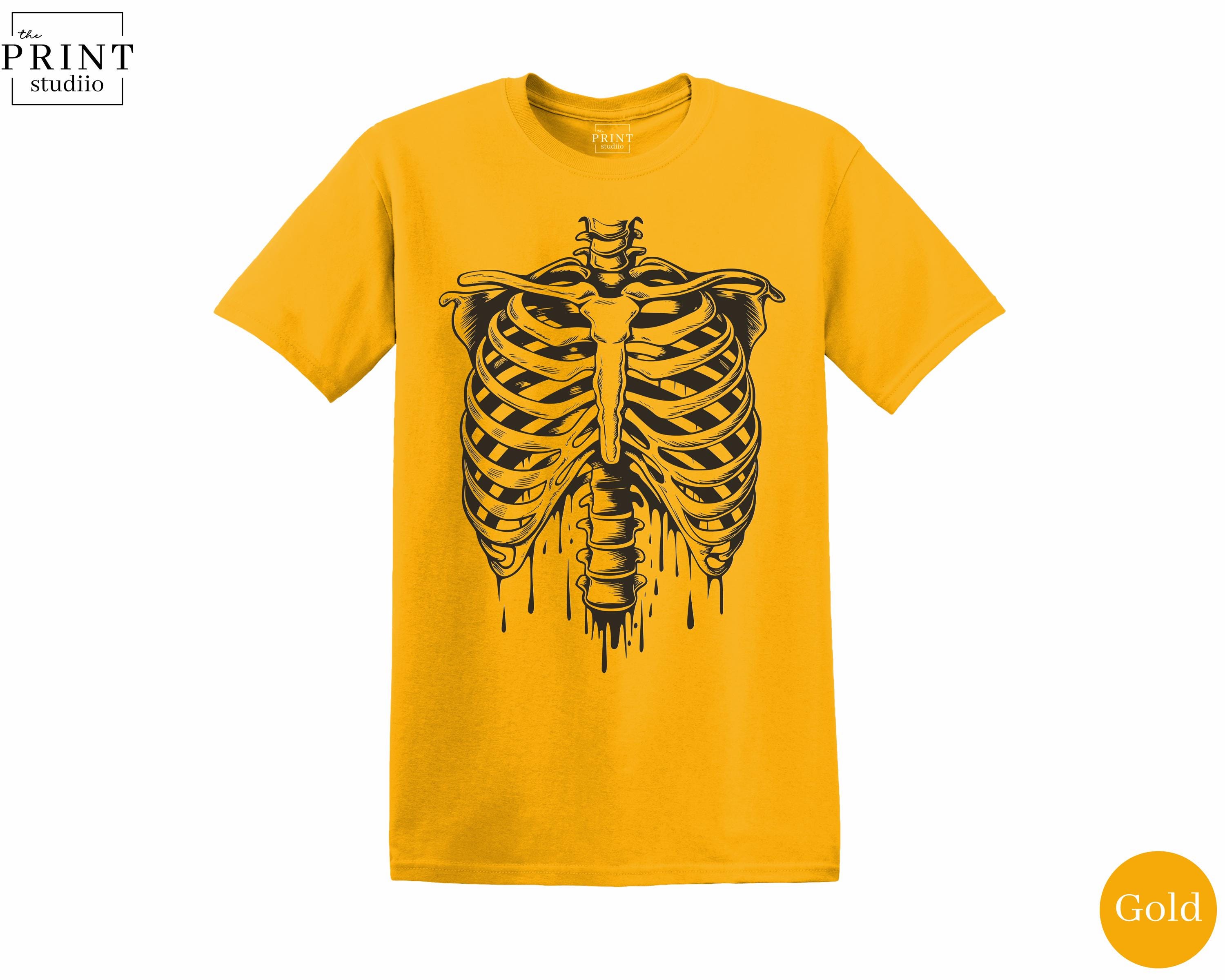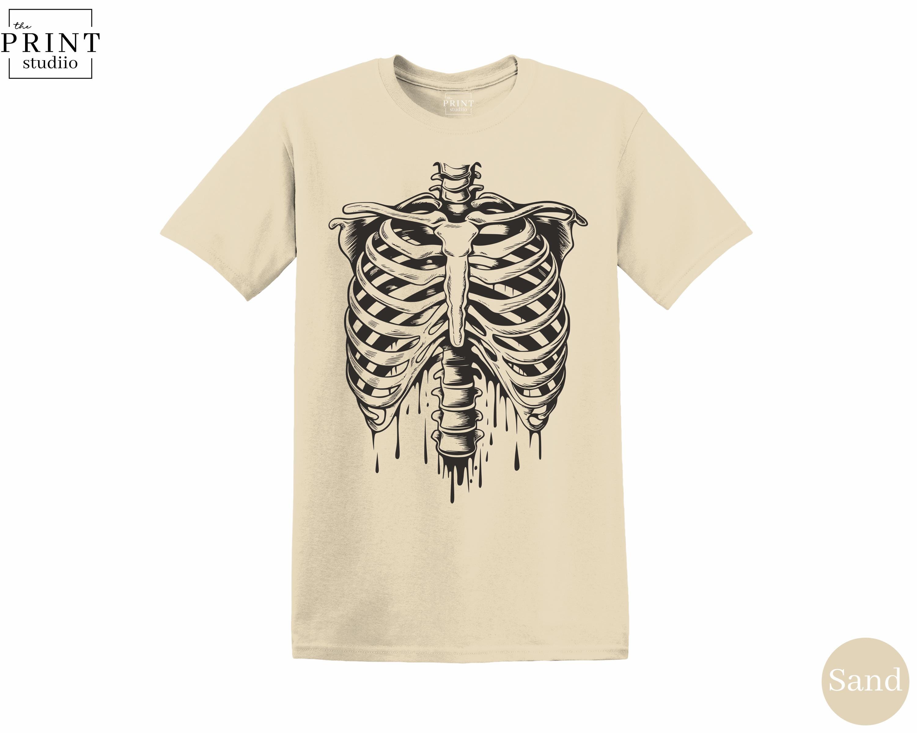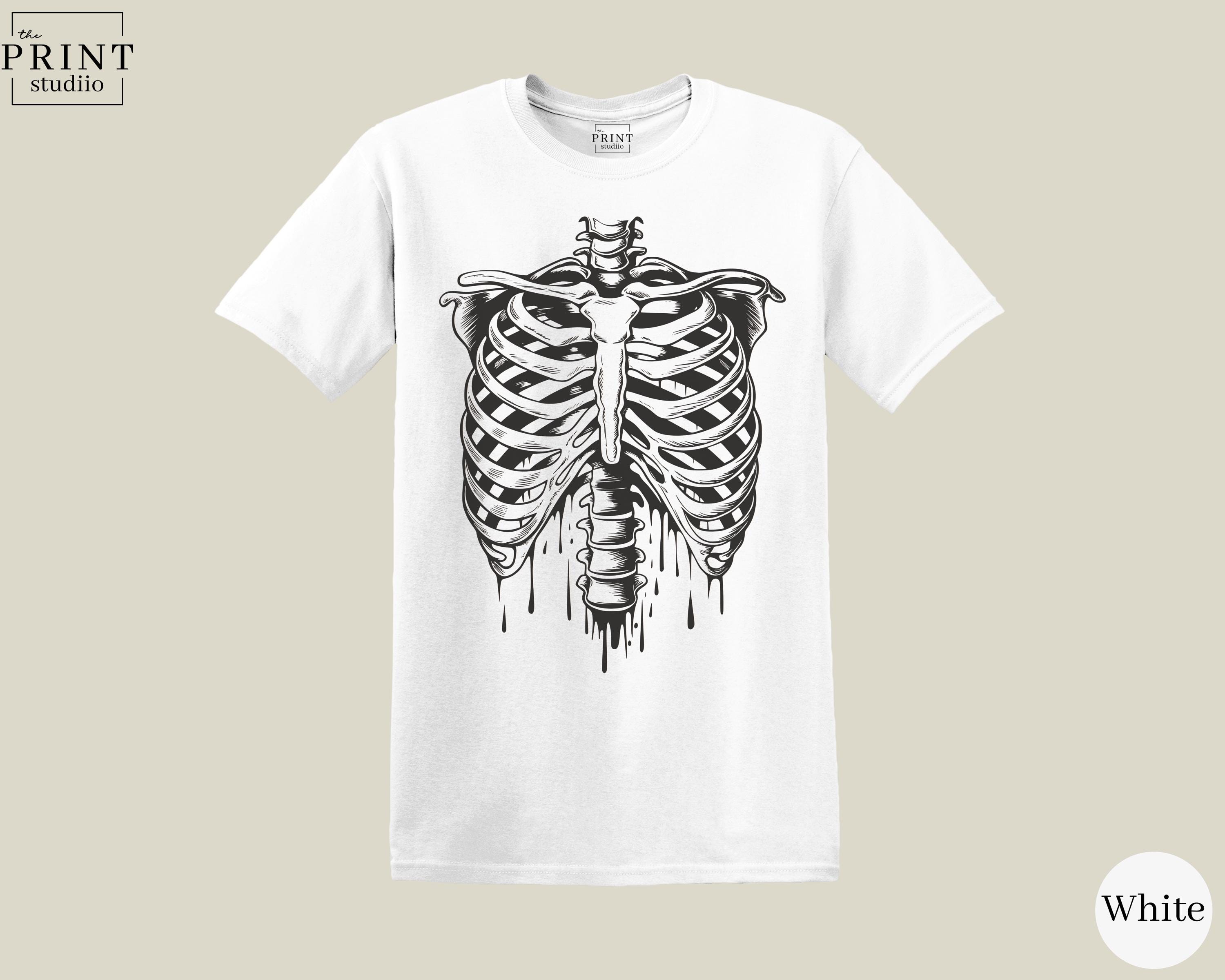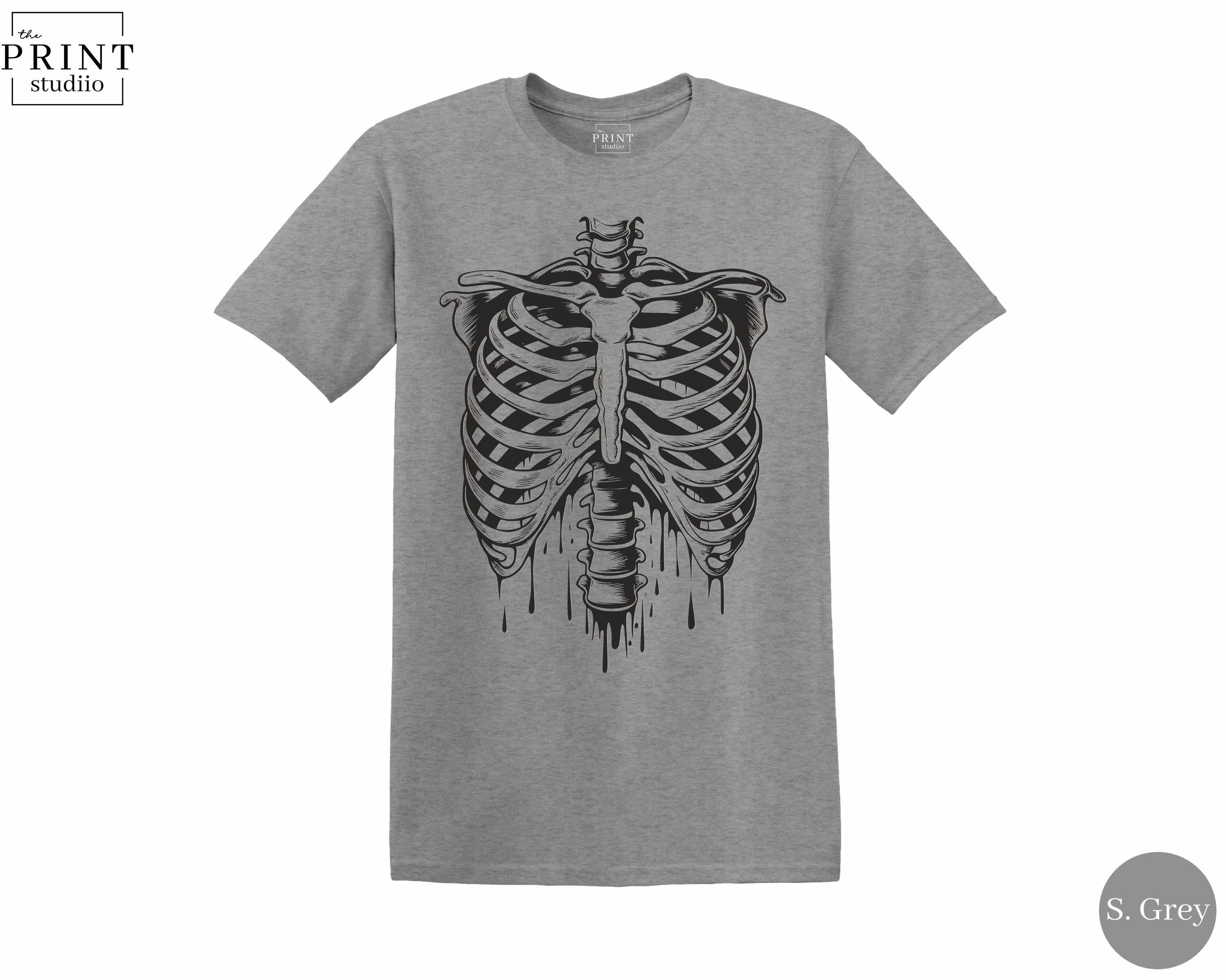 Black Skeleton Ribcage T-Shirt, Gothic Spooky Halloween Graphic Tee
